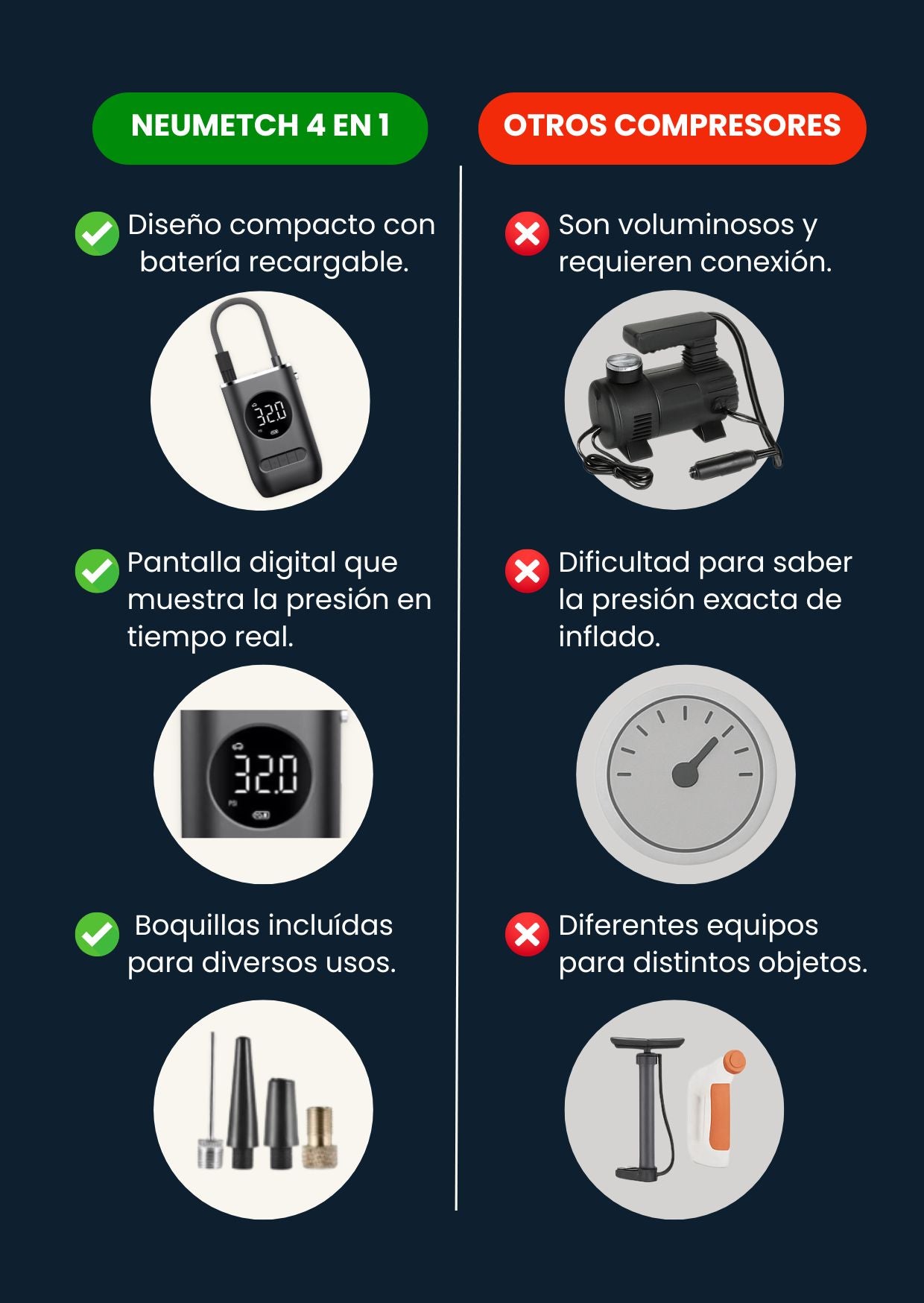 Puedes inflar hasta 4 llantas de auto o más de 10 balones con una carga completa.