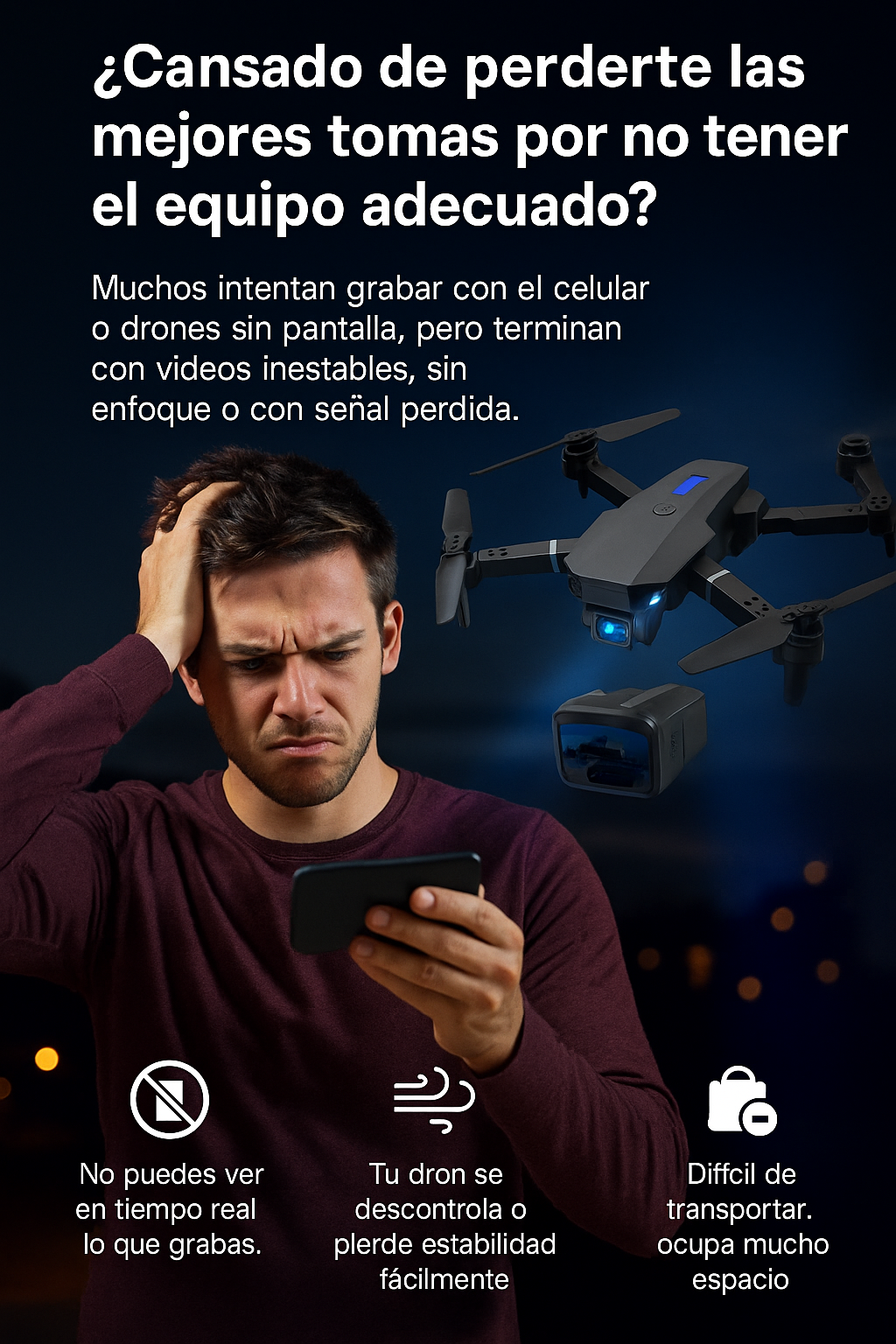 No, el control tiene una pantalla HD integrada, puedes ver el video en tiempo real sin apps.