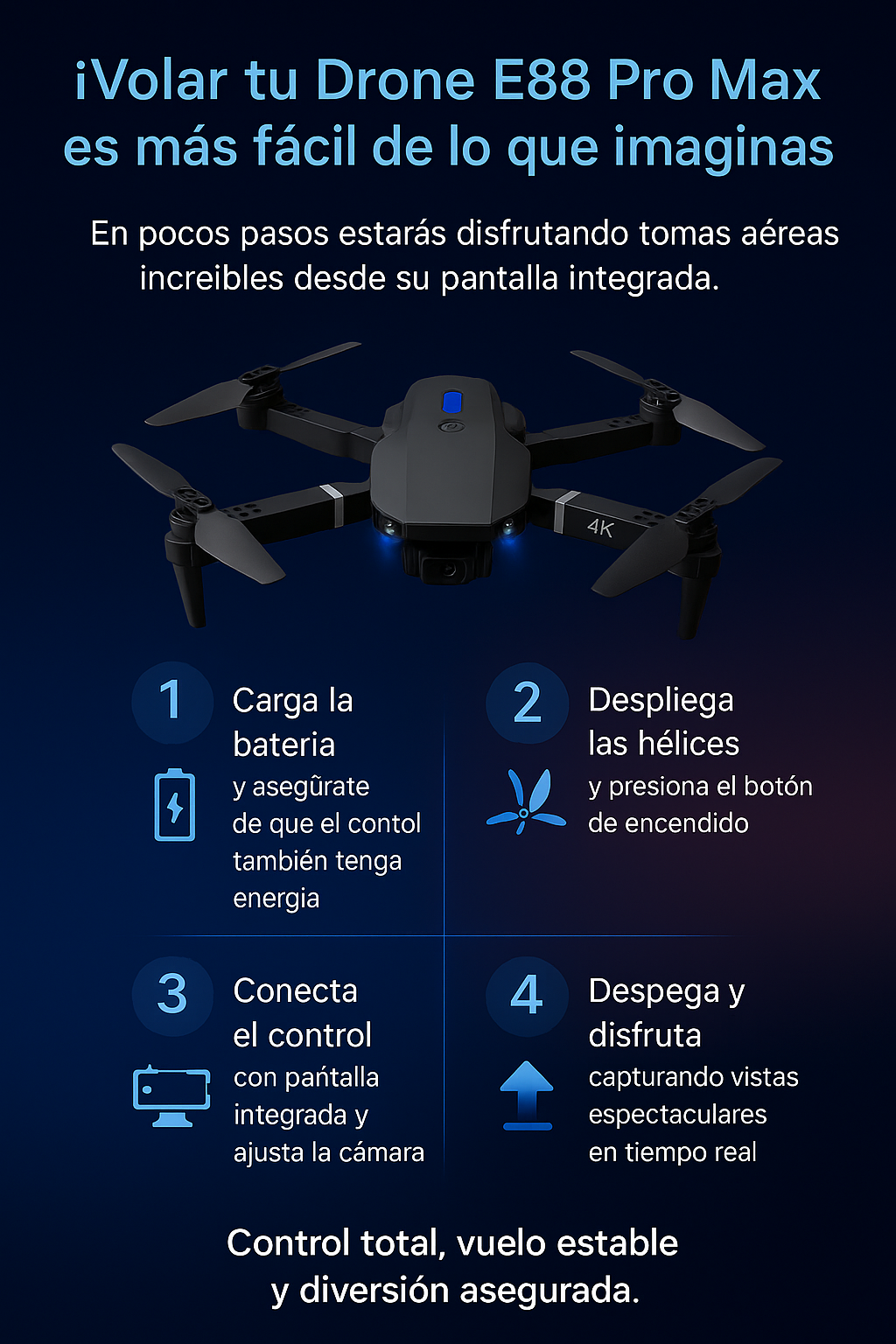 Sí, cuenta con funciones de despegue/aterrizaje automático, modo sin cabeza y mantenimiento de altitud.